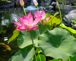 Waterlilies are an excellent choice for deeper areas of the pond. We recommend planting them about 18 to 24 inches below the water’s surface, although they can survive deeper depths. Waterlilies’ leaves and flowers float on the water’s surface, providing shade for fish underneath them and shelter for bugs and frogs light enough to walk on top of them. Almost all hardy waterlilies bloom during the day and close at night.